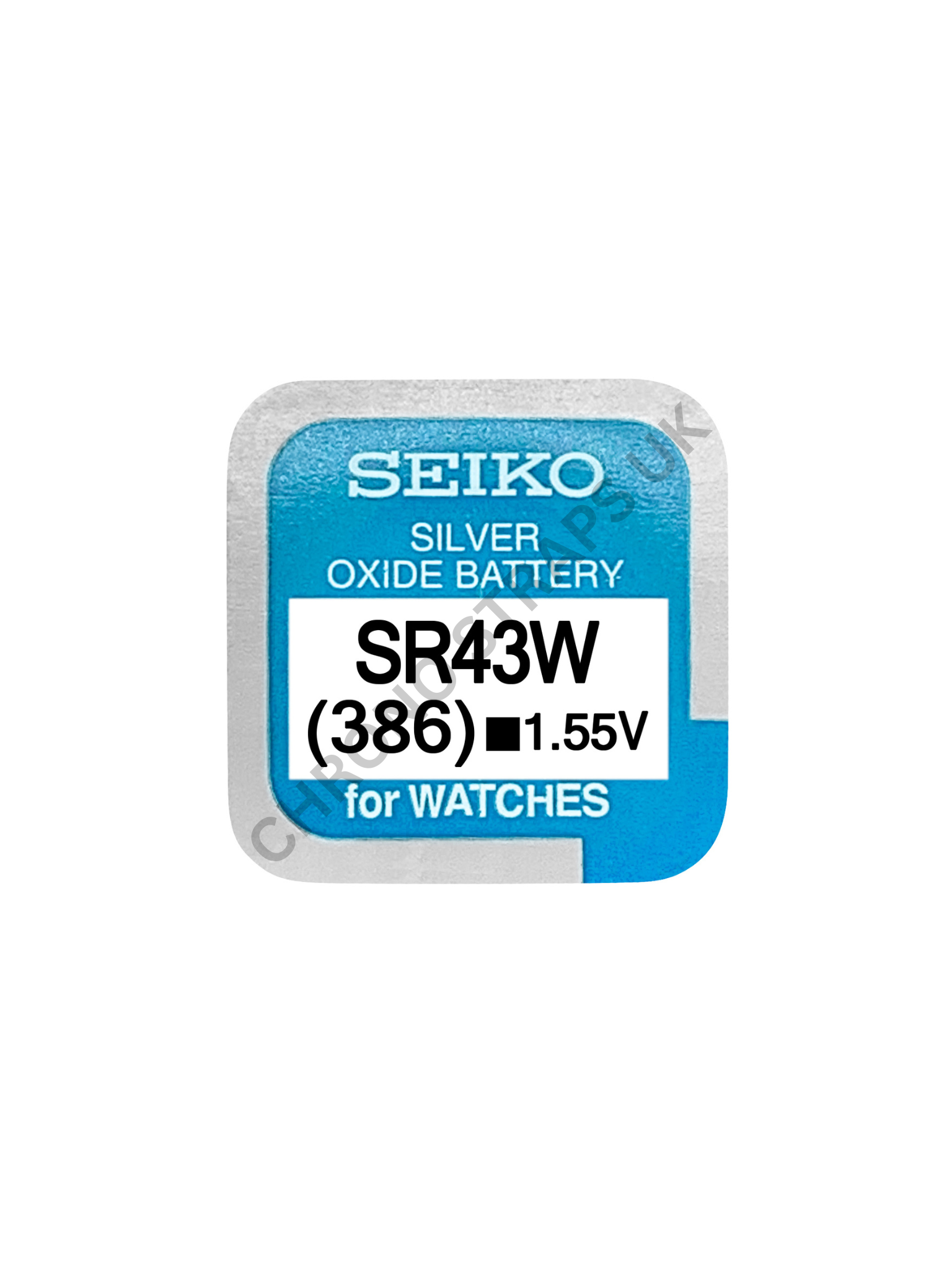 Keep your timepiece running accurately with the Seiko 386 / SR43W silver oxide cell. Stable voltage and leak‑resistant design for dependable performance.